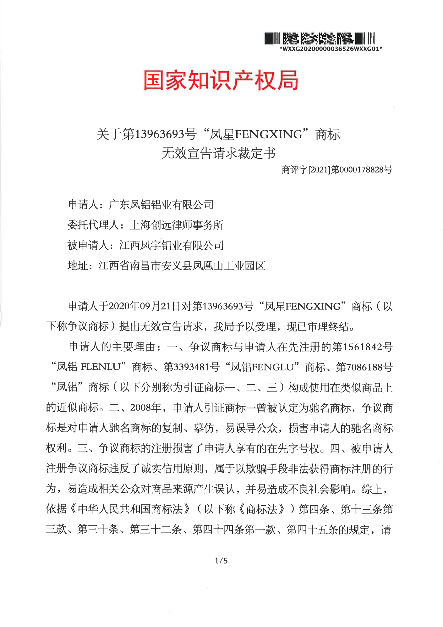 合肥辉知队 | 国家知识产权局:“凤星”商标无效