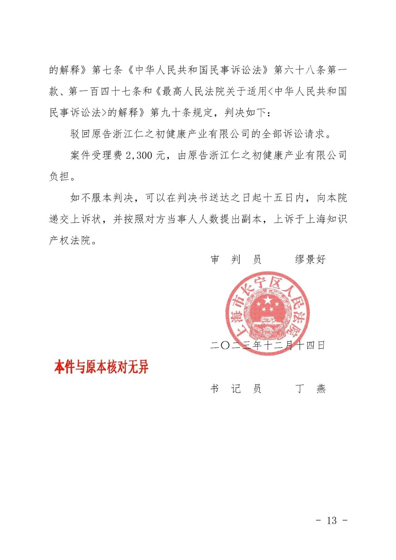 合肥辉知胜诉佳讯 | “仁之初健康”著作权及不正当竞争纠纷案,法院:驳回全部诉讼请求!
